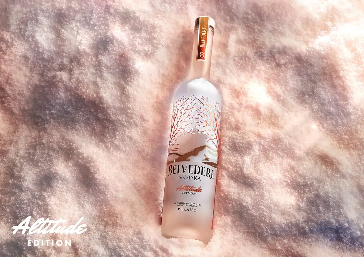 Belvedere Altitude Edition to zimowa odsłona pierwszej na świecie wódki super premium. Zainspirowana widokiem Alp o zachodzie słońca, jej limitowana edycja łączy w sobie energię górskiego zmierzchu w porze „Golden Hour” z luksusowym smakiem migdałów, wanilii i białego pieprzu. Korzystając z sześciusetletniego dziedzictwa polskiej produkcji wódki, Altitude prezentujemy w prestiżowych kurortach alpejskich Francji, Włoch, Szwajcarii i Polski. Design butelki, z alpejskimi szczytami i różowo-złotymi akcentami, to hołd dla piękna gór. Do kolekcji dołącza nowa seria ekscytujących koktajli, z gorącą czekoladą Belvedere i ponczem z przyprawami Altitude.