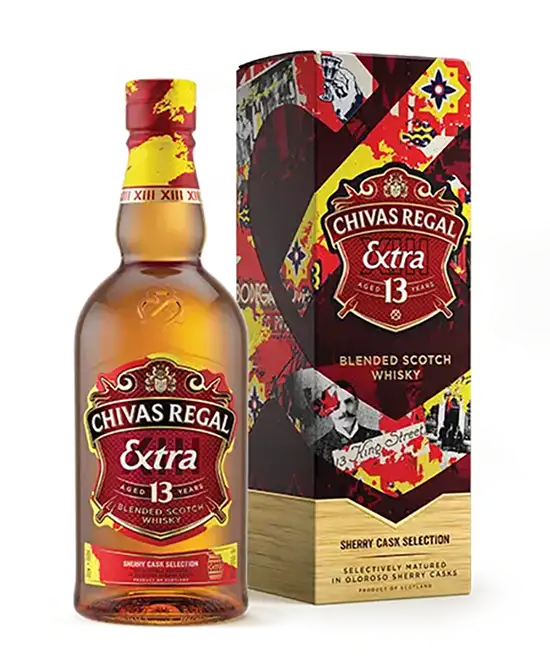 Wczesną wiosną 2020 spółka Chivas Bros. zapowiedziała serię Chivas Extra 13 Collection składającą się z czterech 13-letnich blendów, w których kreacji Sandy Hyslop, mistrz kupażu Chivasa, wykorzystał cztery unikatowe rodzaje beczek: po sherry Oloroso, amerykańskiej rye whiskey, rumie oraz tequili. Inspiracją kolekcji są założyciele firmy, bracia James i John Chivas, importerzy rumów, orientalnych przypraw i artykułów spożywczych, a także producenci własnej blended whisky. Firma miała siedzibę w Aberdeen, przy King Street 13. Prezentowana tu edycja to perła w koronie nowej kolekcji, whisky „selectively matured in Oloroso sherry casks”, co rozumiemy iż część każdej partii finiszowała w beczkach po sherry Oloroso pierwszego napełnienia.