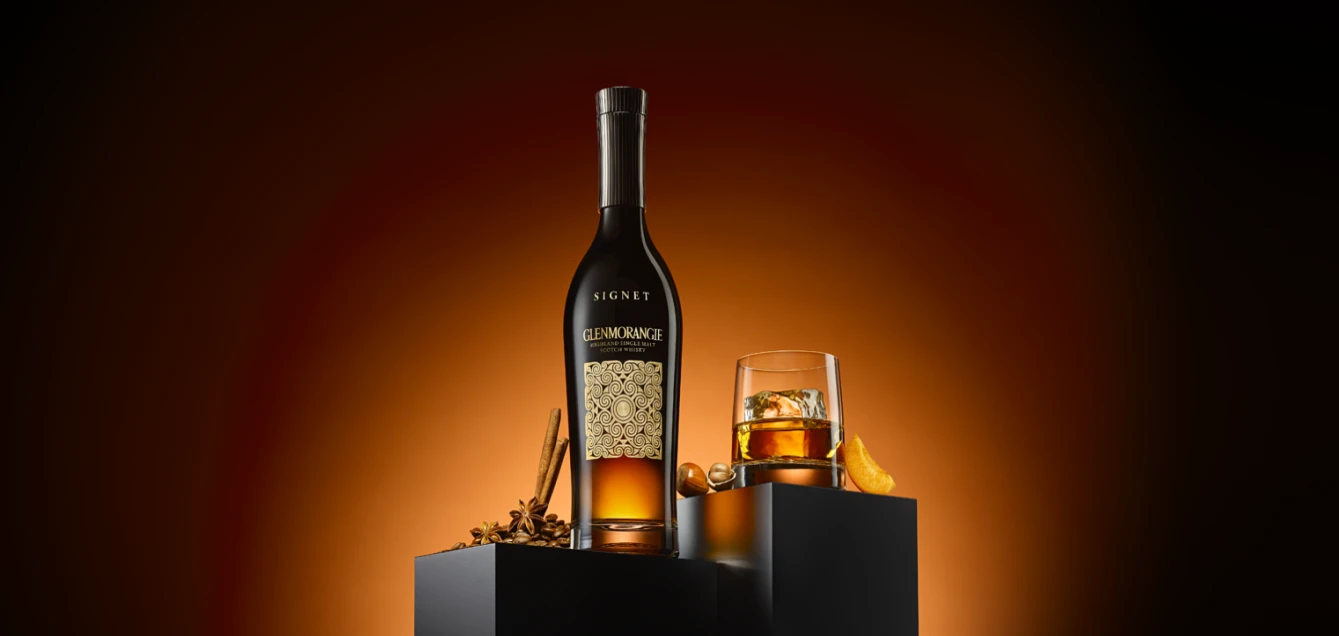 Prawdziwie unikatowa whisky powstająca z głęboko prażonego jęczmienia zwanego „słodem czekoladowym”. Glenmorangie Signet przykuwa wzrok głębokim, ciemnym kolorem i eksploduje aromatami deserowej czekolady, świeżo zaparzonego espresso i kandyzowanej skórki pomarańczowej.