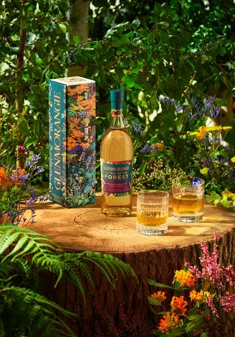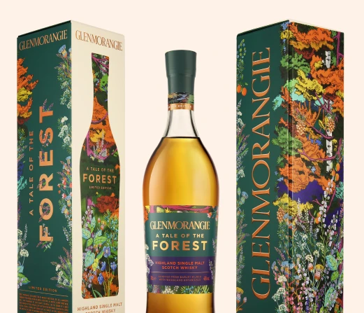 Z wykorzystaniem starożytnej metody macerowania jęczmienia w leśnych roślinach, Glenmorangie A Tale of the Forest to pierwsza whisky Glenmorangie stworzona z jęczmienia suszonego wraz z botanicznymi dodatkami z lasu. Ta wyjątkowa whisky zainspirowała ilustratorkę Pomme Chan, aby stworzyć swój własny fantastyczny las. Jej praca zdobi opakowanie whisky