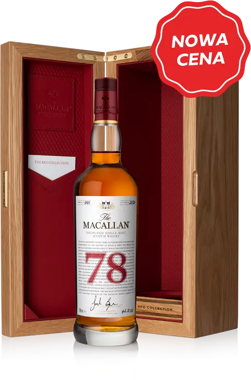 Czerwień ma szczególne znaczenie w historii Macallana, począwszy od nazwiska założyciela, Alexandra Reida (słowem „Reid” Szkoci określają rudowłosych), poprzez Rodericka Kempa, który w 1903 roku wydał serię „Choice Old” i aby podkreślić jej unikatowość pakował ją w kartony z czerwonym nadrukiem (standardowa whisky Macallan była pakowana w kartony opatrzone drukiem czarnym), po Allana Shiach, który w 1980 roku z podobnych przyczyn ozdobił czerwoną wstążką rzadkie edycje vintage 1938, 1940 i 1950. Każda butelka w nowej kolekcji prezentowana jest w skrzyneczce wykonanej z hiszpańskiego dębu, tego samego, w którym starzony jest Macallan, wyściełanej czerwoną szkocką skórą pochodzącą od producenta artykułów luksusowych, Bridge of Weir Leather. Prezentowany tu nestor, Macallan 78 years old, najstarsza whisky wszechczasów, nosi podpis Sary Burgess, dzierżącej tytuł „Lead Whisky Maker for the Macallan”. (Nota pani Burgess.)