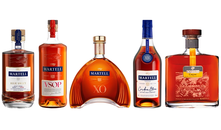 * Cognac Martell Blue Swift Spirit Drink /40%/ 0,7l + 5 sampli degustacyjnych o poj. 20ml wymienionych powyżej.