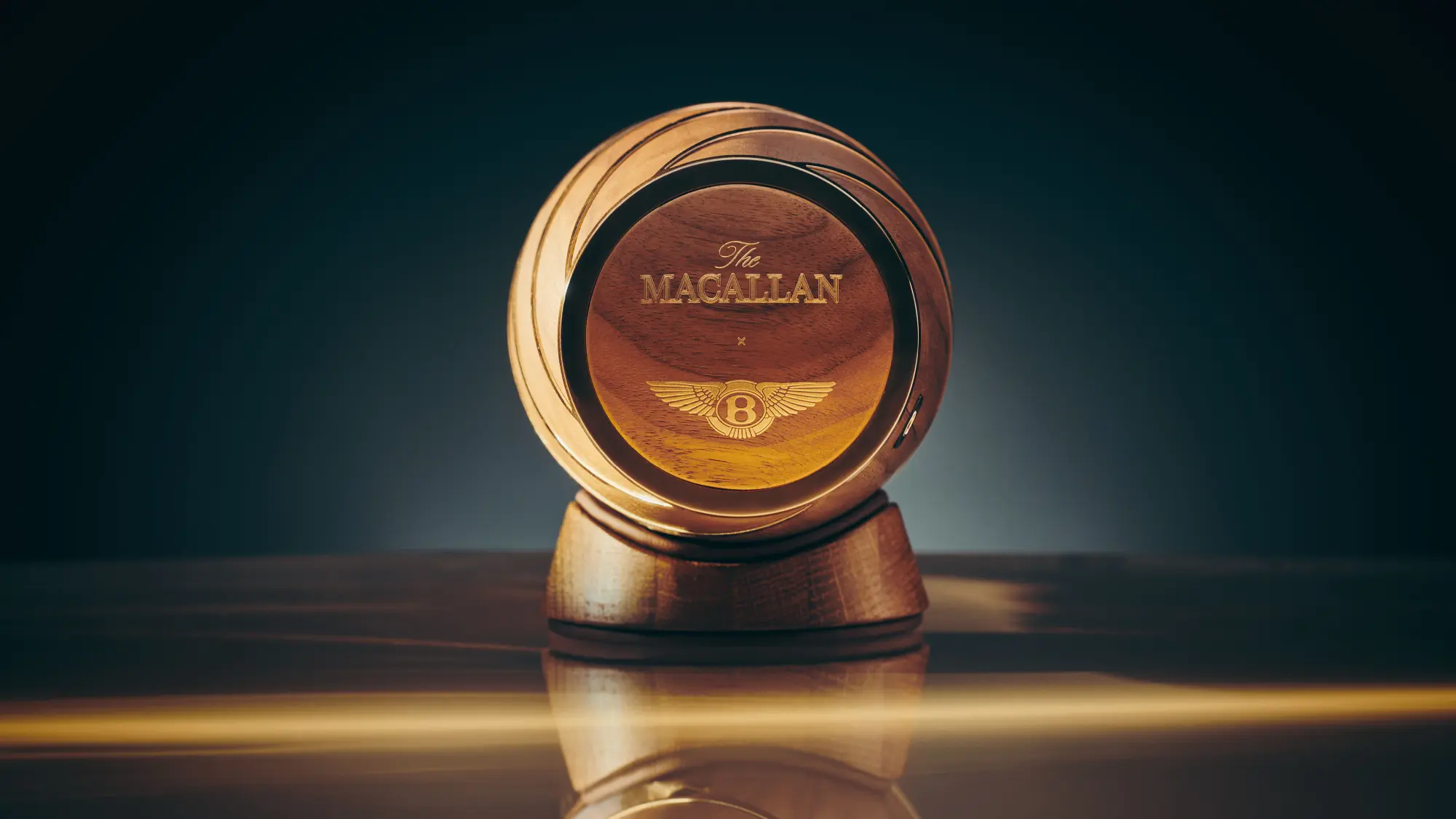 Nasze wyjątkowe dębowe beczki w największym stopniu przyczyniają się do wyjątkowej jakości i charakterystycznych aromatów, smaków i naturalnego koloru whisky The Macallan. Stworzenie dębowej beczki sezonowanej sherry zgodnie z wymagającymi standardami The Macallan zajmuje około sześciu lat. Jedną z najbardziej uderzających cech wnętrza Bentleya jest drewniany dekor, który otacza kabinę. Eksperci ds. drewna firmy Bentley dokładają wszelkich starań, aby znaleźć najlepsze forniry na świecie, a każdy arkusz jest pozyskiwany w sposób odpowiedzialny dla środowiska. The Macallan Horizon posiada dębową inkrustację na zamknięciu - wykonaną z jednej z sześciu beczek używanych do dojrzewania tej whisky - dodatkowo wykończone jest fornirem „Bentley's Crown Cut Walnut”, charakterystycznym dla samochodów marki Bentley.
