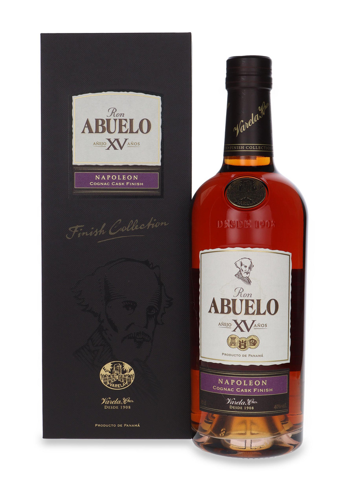 Abuelo XV Napoleon Cask Finish spent 15 years maturing in oak casks. The final stage of that maturation took place in barrels that previously held Napoleon brandy. It is one of three expressions of the rum that underwent such additional maturation (so-called wood finishing). Its bouquet offers notes of dried fruits, raisins, vanilla, leather, oak, cocoa and a hint of brandy.
