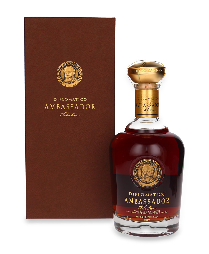 Diplomático Ambassador is a spirit that is meant to commemorate the 18th century distiller Don Juancho Nieto Meléndez, also known as El Ambassador. It is a blend of spirits originating exclusively from distillation in traditional stills, matured for 12 years in oak barrels. In addition, the last 2 years of maturation this spirit spent in Pedro Ximenez sherry barrels.