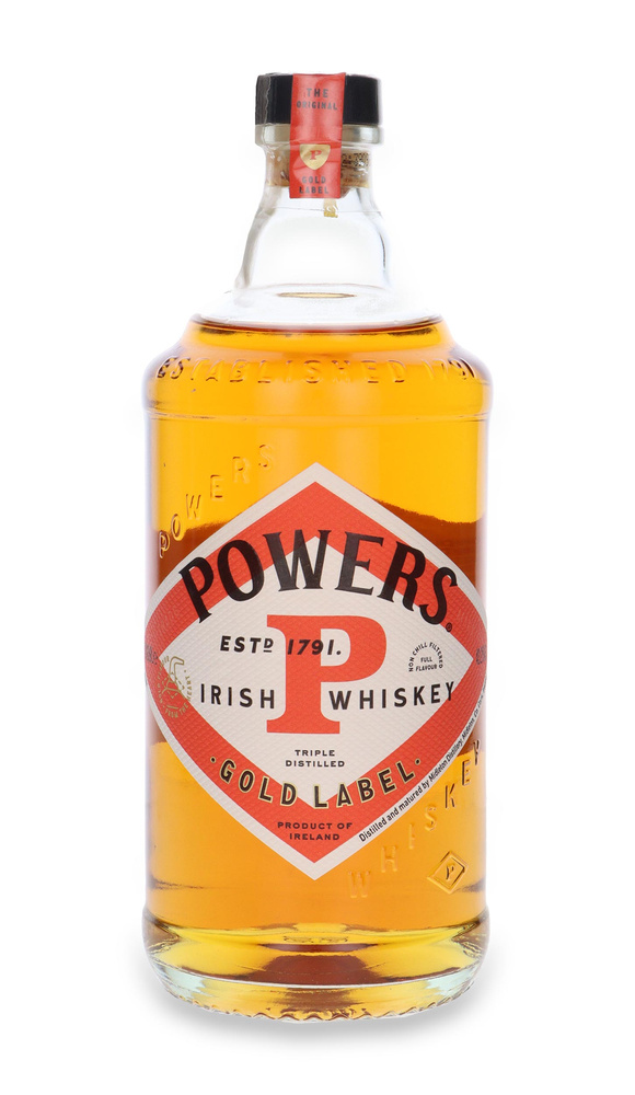 In the late 19th Century, the family produced over 4 million liters of spirit per annum and was one of four producers dominating the Irish distilling landscape. John Power & Sons was one of the founders of Irish Distillers Group in 1966 and since 1975 Powers whiskey has been produced by Midleton Distillery. Originally pure pot still whiskey the brand was reformulated as a blend with high pot still content. Powers Gold Label is a blend of triple distilled single pot still and grain whiskeys aged from five to six years exclusively in white American oak barrels. In 2020 the brand changed label design, which now includes the iconic red Powers diamond “P”. In the original distillery the diamond P was everywhere – on the casks, on bills and receipts and workers at the John’s Lane Distillery even wore a diamond P on their lapel.
