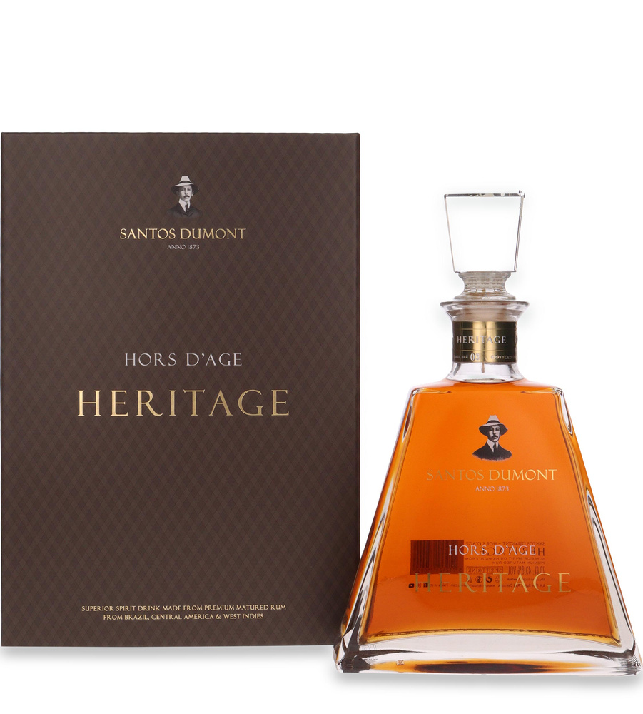 Santos Dumont Hors D'Age Heritage is a near-perfect blend of high-quality spirits, using molasses and sugarcane rums from the American Virgin Islands and Central America, all matured in oak barrels.