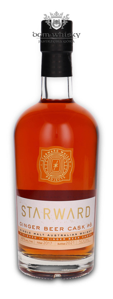 The investment allowed increasing production to 250,000 liters of spirit per annum. Recently the distillery started their experimental project in order to create some out of ordinary flavors. Here we have something extraordinary, Starward single malt whisky distilled in 2017, aged in Apera and red wine casks and finished in ginger beer cask, the formula of which was loaded with citrus peel and fresh ginger.
