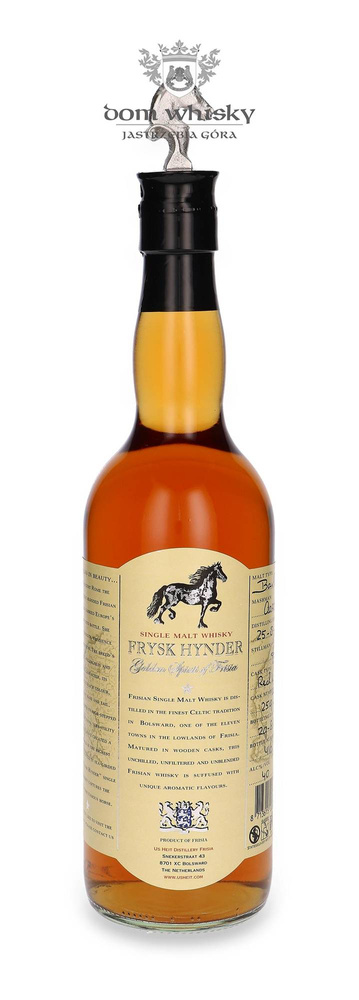Its producer is the small US Heit distillery (annual production of 10,000 bottles) owned by Aart van der Linden, based in Bolsward, operating on the premises of the family brewery (whisky production began in 2002). The plant distills from locally grown barley, which is malted on site. The maturation process uses barrels from red wine, sherry, port and cognac. The Frysk Hynder presented here, distilled on August 25, 2017, was aged in a red wine barrel no. 259B for five years and bottled on August 29, 2022 at 40% alcohol.