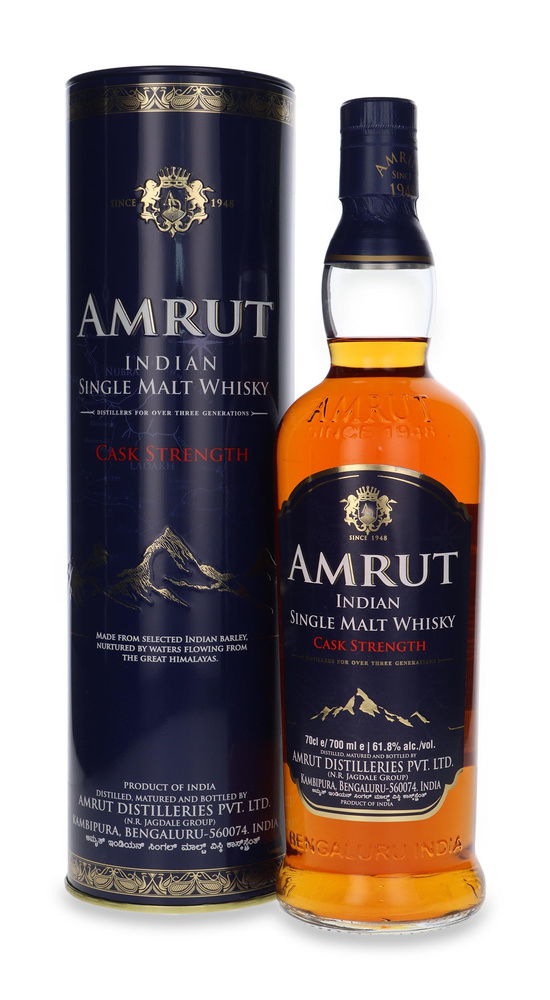 It debuted on August 24, 2004 in Glasgow, and is now available on all continents. Since its debut, the aforementioned "elixir" has had an impressive number of editions, and has also won over 30 medals and awards. Amrut Distilleries Ltd. was founded in 1948 by Shri JN Radhakrishna Jagdale with the mission of supplying the Indian Ministry of Defense with alcoholic beverages. The company specializes in the production of blended whiskey, vodka, gin, brandy and rum, while malt whiskey accounts for only 5% of its turnover. Here we present a limited edition of Amrut Cask Strength aged in American oak barrels and bottled at 61.8% abv in 2022 as Batch # 121.