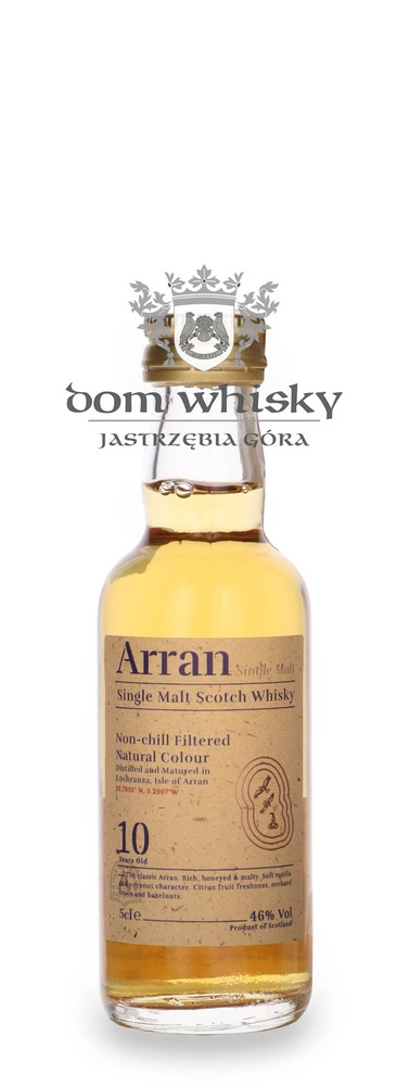 The whisky is matured predominantly in ex-bourbon barrels with a little addition of ex-sherry casks. In September 2019 Arran single malt got a new modern look, it is being now presented in bespoke bottles with new labels and gift tubes but according to the company statement the whisky inside the bottle remains unchanged. The whisky is bottled at 46% abv and without chill-filtration. Arran 10 years old scored dozens of prestigious awards, the most recent one was gold medal at the 2019 International Wine & Spirits Competition.