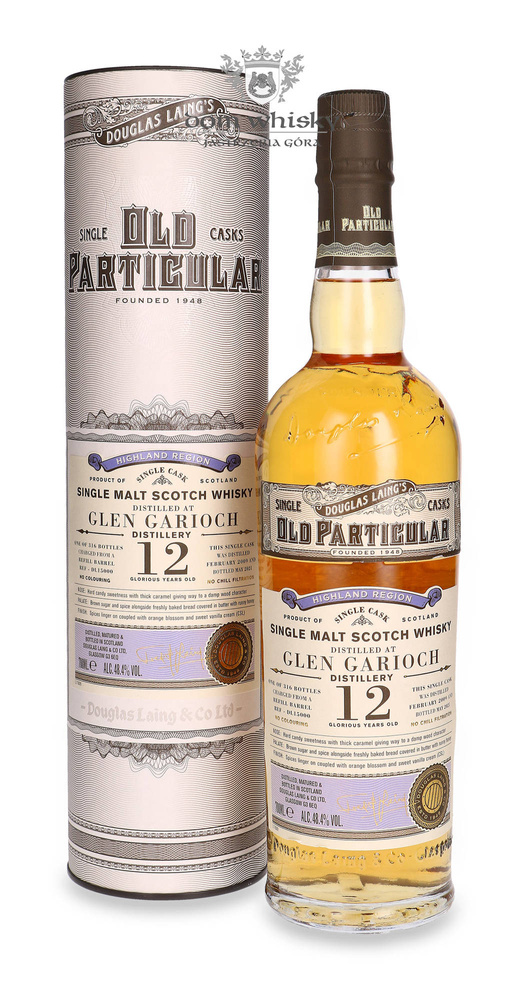 Whose history spans four centuries – it was founded in 1797 and currently belongs to the Beam Suntory concern and equipped with three stills (one has not been used for years) can produce about 1.3 million liters of distillate per year. Since 1994, the local whisky has been devoid of smoky and peaty tones, previously the plant produced malt itself, in which the concentration of phenol compounds was about 10 ppm. The Glen Garioch 12 years old presented here is a proposal of Douglas Laing & Co. in the Old Particular series. The whisky distilled in February 2009 was aged in a refilled bourbon barrel (no. DL 15000) and bottled at 48.4% abv and without cold filtration in May 2021 in an edition of 316 bottles.