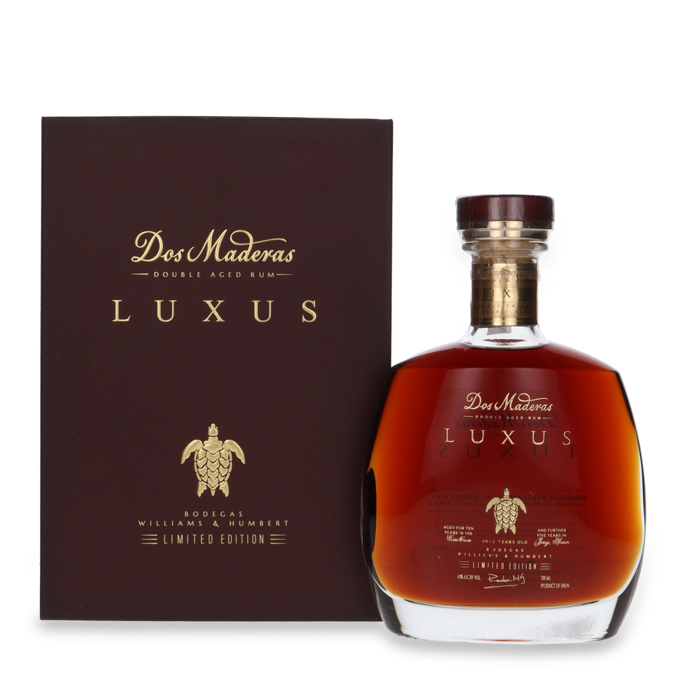 Dos Maderas Luxus to rum dojrzewany przez 10 lat w tropikach Karaibów, po czym przetransportowany do Hiszpanii, gdzie trafia do beczek z amerykańskiego dębu po sherry typu Pedro Ximenez marki Don Guido. Ten drugi, hiszpański etap maturacji odbywa się w systemie solera i trwa 5 lat.
