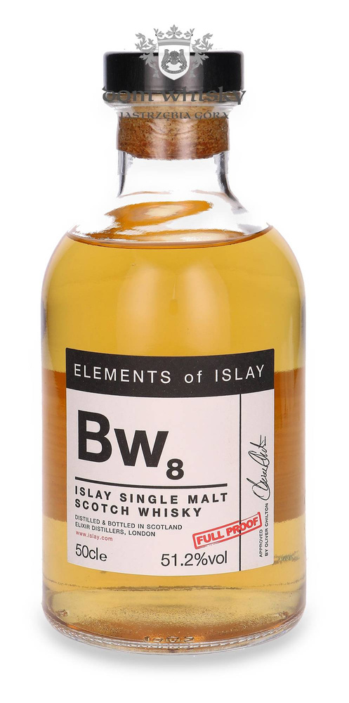 „Pierwiastki Islay” butelkowane są z naturalną zawartością alkoholu i bez filtracji na zimno albo w wersji single cask albo small batch (zestawione z nie więcej niż 20 beczek). Nazwa każdej edycji przypomina nieco Okresowy Układ Pierwiastków Mendelejewa, a liczba po symbolu odnosi się do ilości wypustów z danej destylarni. Prezentowany tu Bw8 to ósma edycja Bowmore’a; whisky wydestylowana w latach 2001-2003 starzona była w beczkach po bourbonie i po sherry Oloroso i butelkowana w 2020 roku w mocy 51,2% abv w edycji liczącej 1320 butelek.