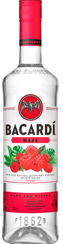 • BACARDI Razz to niepowtarzalne połączenie białego rumu i smaku malin, które przeniesie Cię wprost do tropikalnego raju. Stworzony przez ekspertów poszukujących intensywnego smaku idealnego do przyrządzenia koktajli.